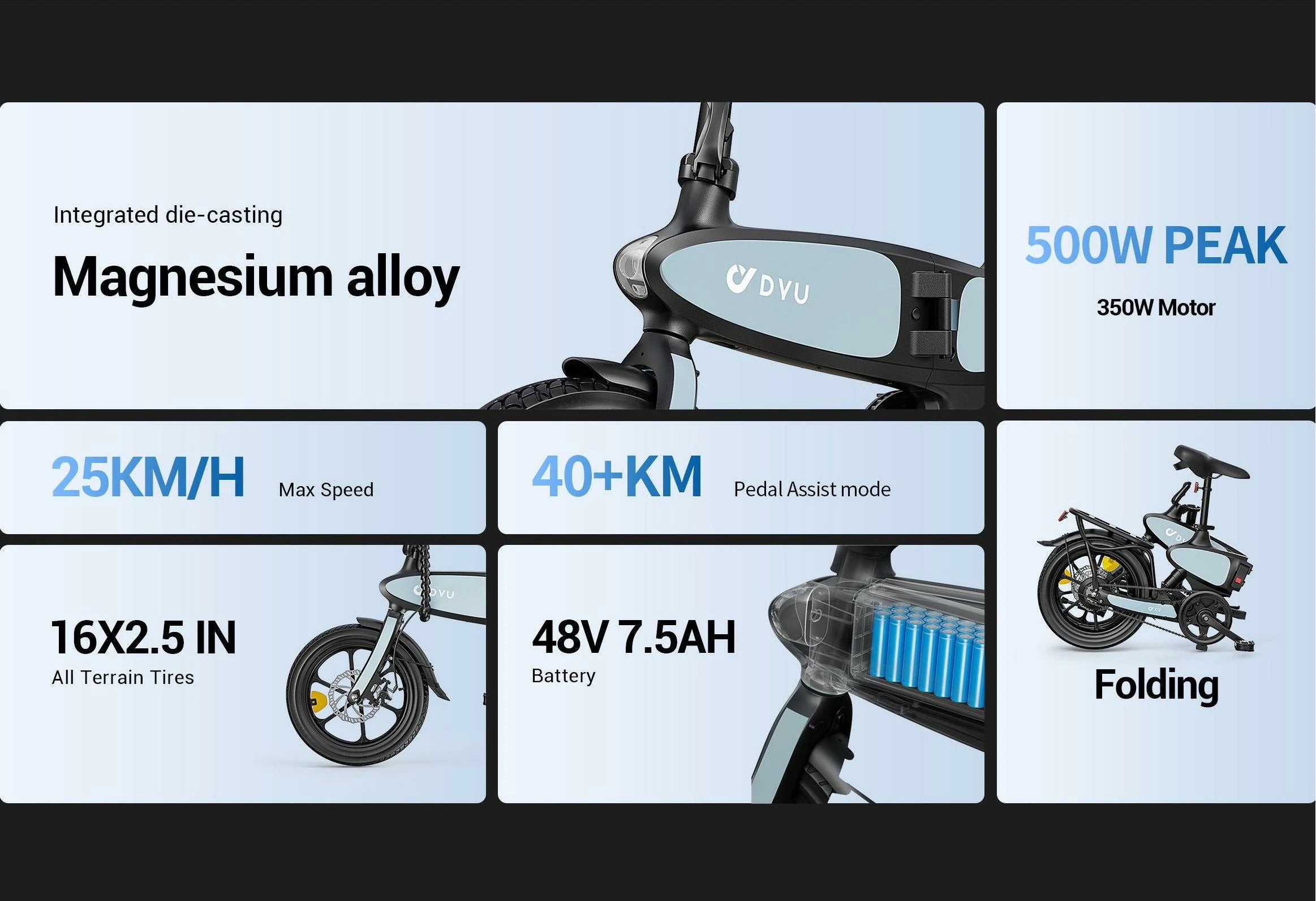 350W motor | 36V 7,5AH batteri | 25 km/h hastighet | 25–30 km E-räckvidd