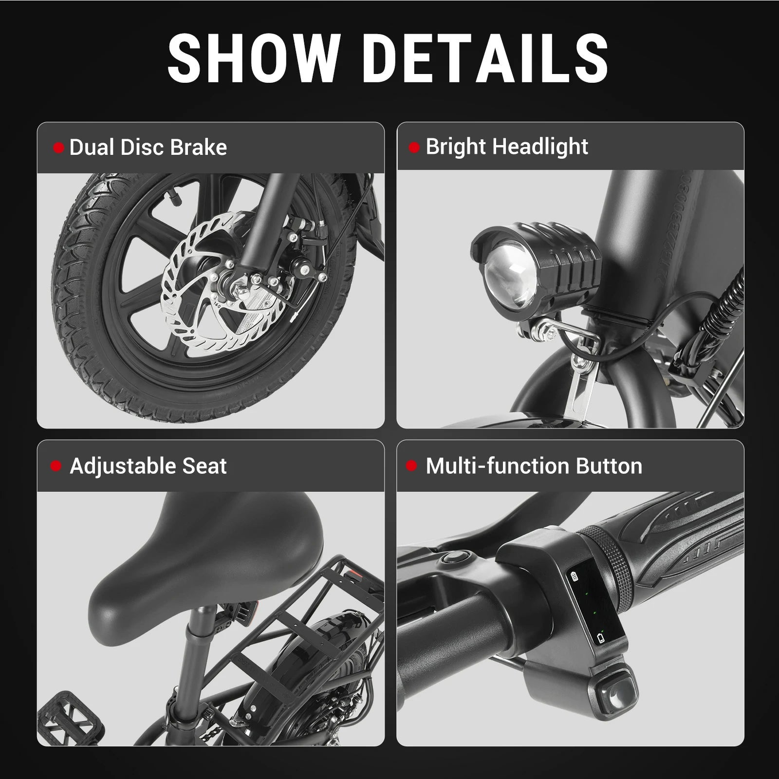 750W motor | 48V 20AH batteri | 45 km/h hastighet | 68–72 km E-räckvidd