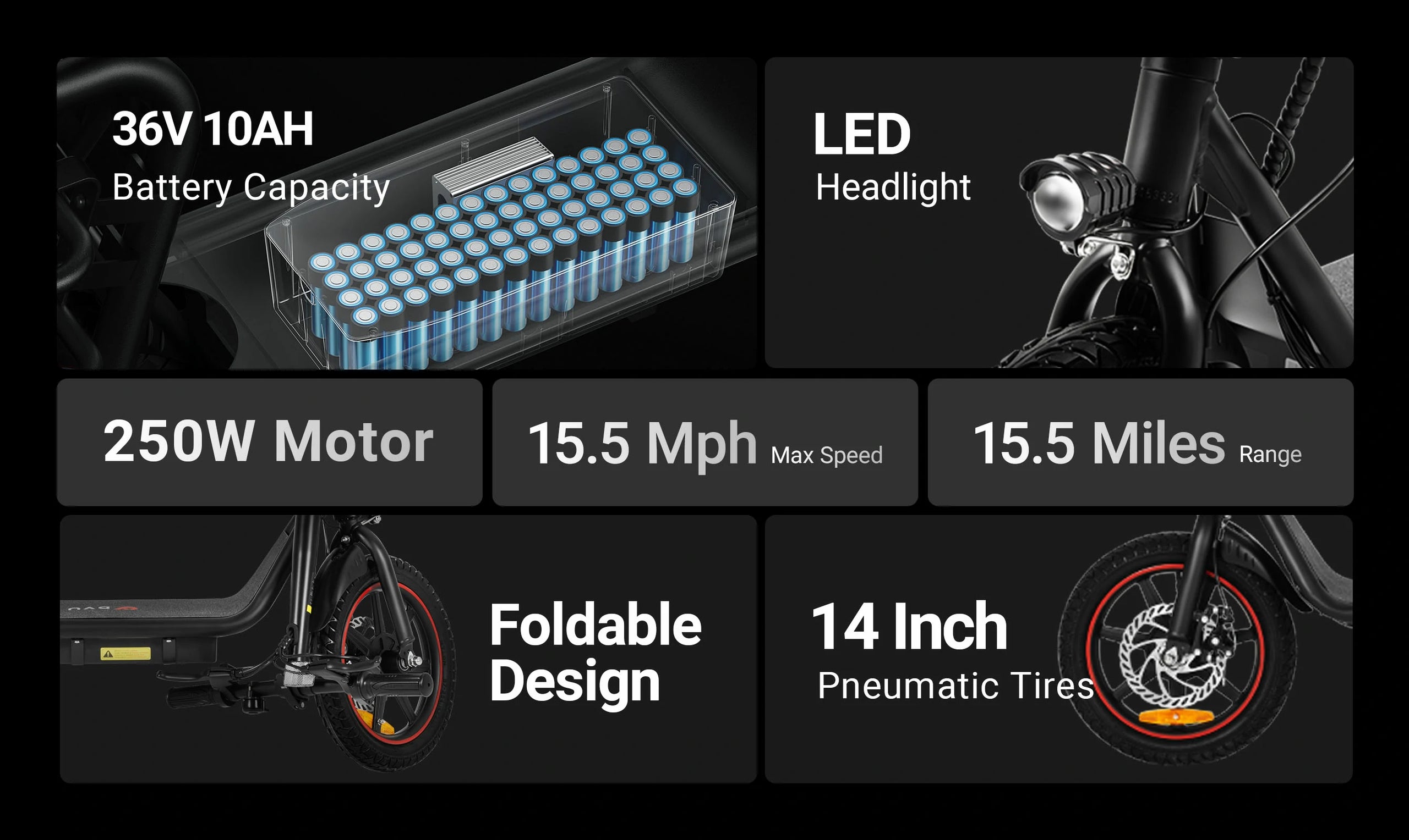 250W motor | 36V 10AH batteri | 25 km/h hastighet | 30–40 km E-räckvidd