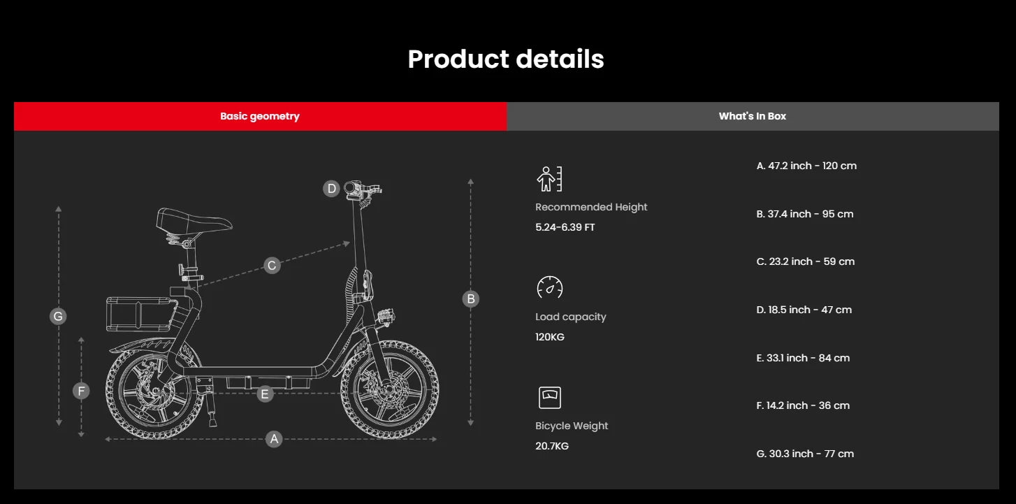 750W motor | 48V 20AH batteri | 45 km/h hastighet | 68–72 km E-räckvidd
