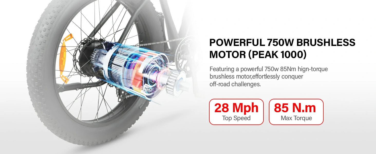 750W motor | 48V 20AH batteri | 45 km/h hastighet | 68–72 km E-räckvidd