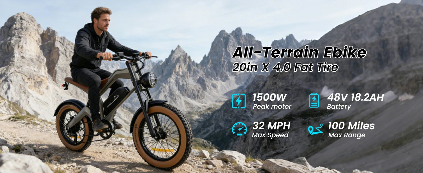 1500W Motor | 48V 18.2AH Battery | 55km/h Speed | 40-60km Range