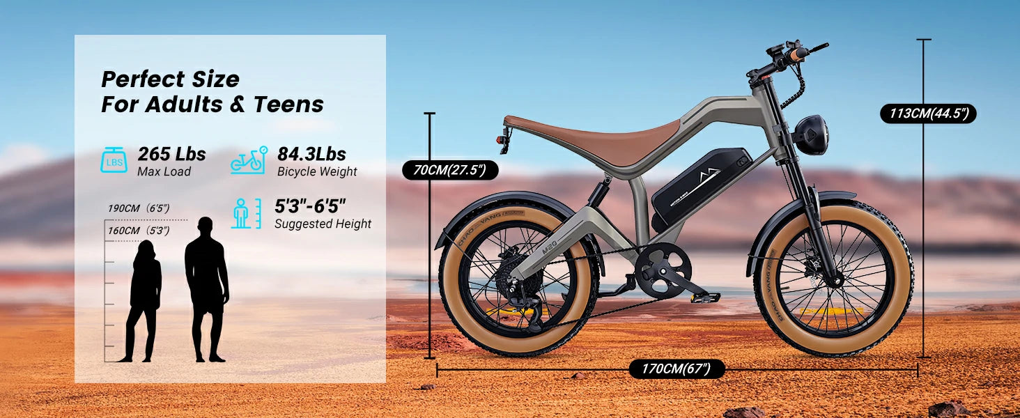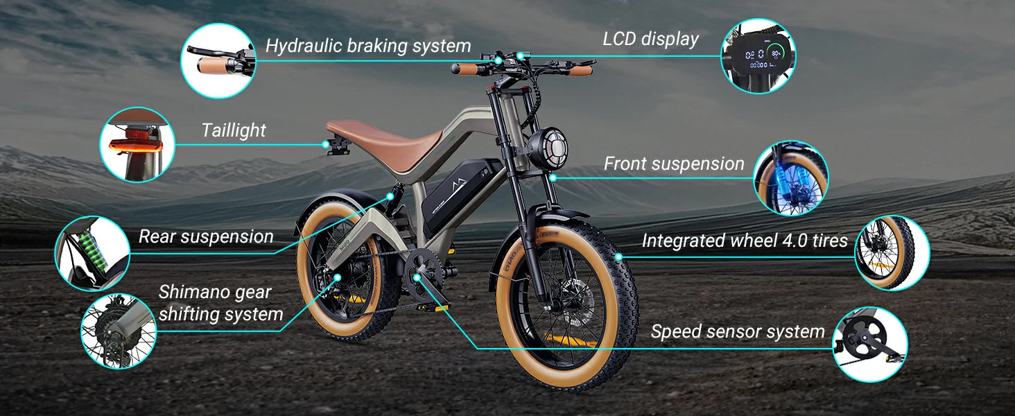 750W motor | 48V 20AH batteri | 45 km/h hastighet | 68–72 km E-räckvidd